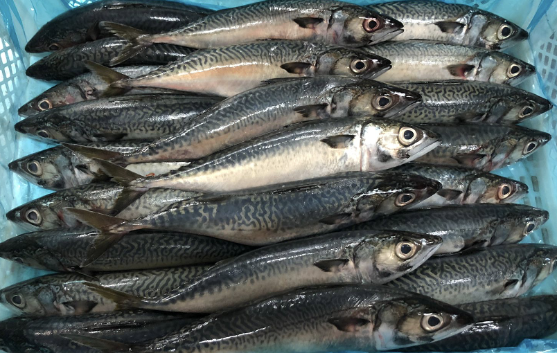 Caballa entera congelada, HG, HGT, filetes con piel.